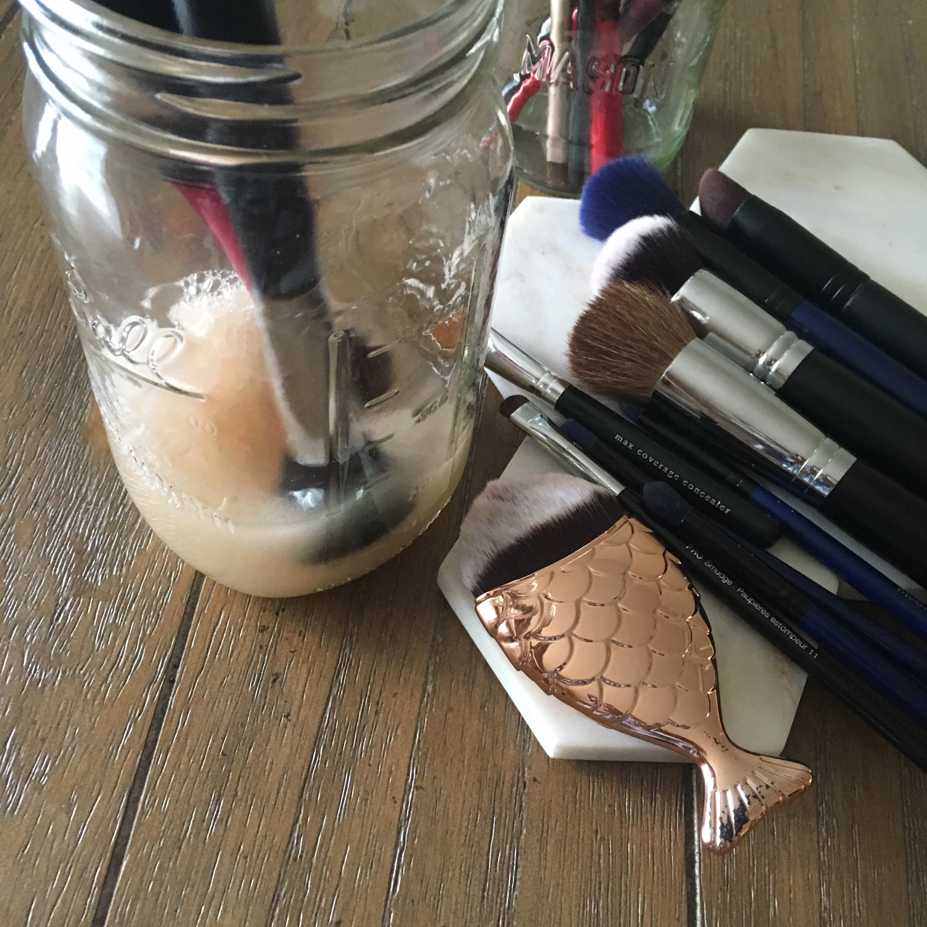 This is my friendly PSA to clean your brushes regularly! You don’t want your brushes to turn into a breeding ground for germs. YUCK! I clean mine weekly, and recommend choosing a day and make it a ritual. This is how I clean my brushes: