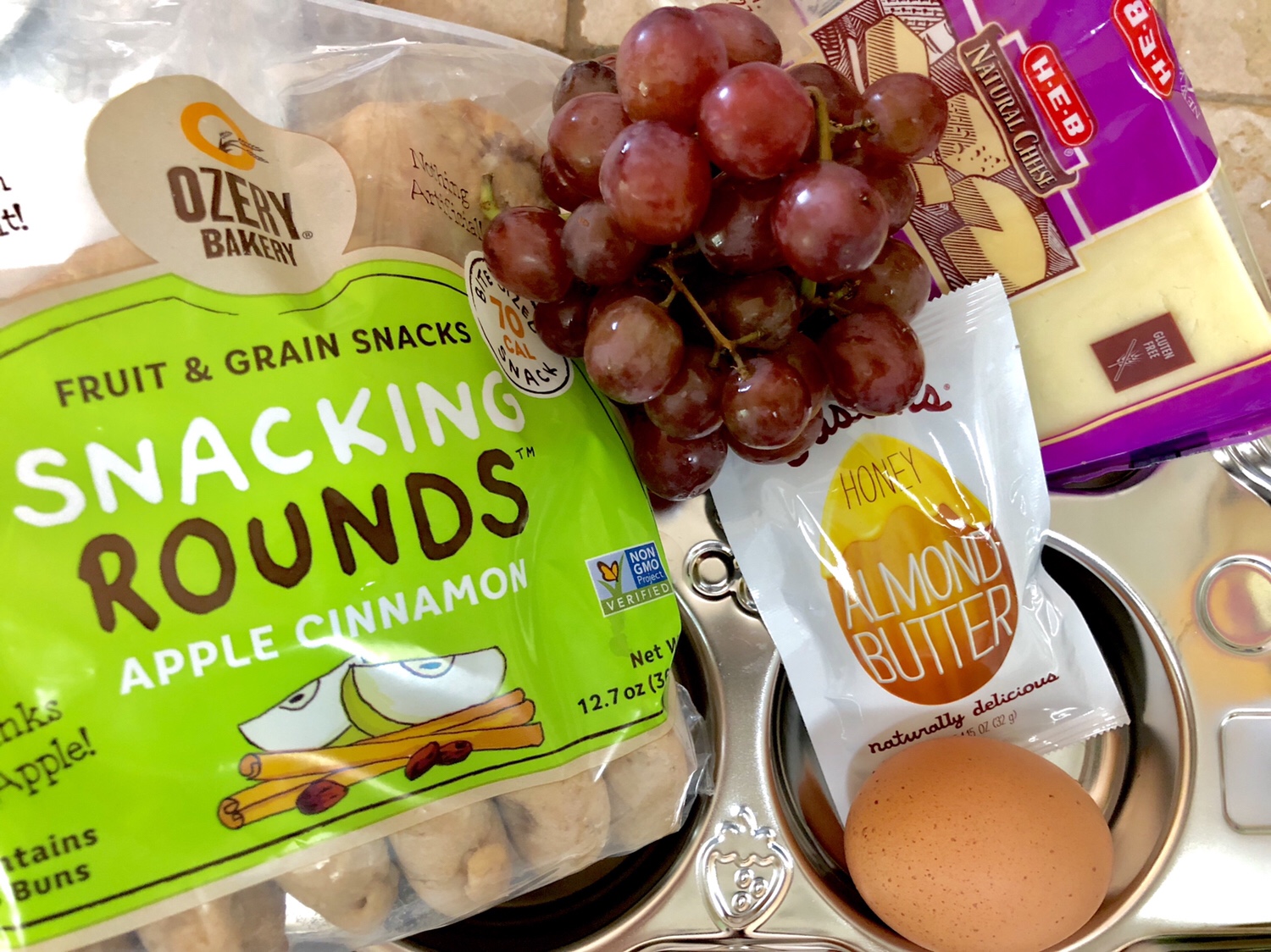 Both of my kids absolutely love the snack boxes from the coffee shop, after all, I had been walking to Starbucks every day with my son since he was born. Now, that I have two kids with growing appetites in tow, and I’m drinking just as much coffee (if not more!) and definitely need ways to stretch our coffee shop budget. This is how I dupe the snack box, perfect for preschool lunch boxes or park play dates! Totally toddler approved! I like to use reusable stainless steel bento trays to minimize the number of containers we would throw away, and the kids like fun food storage.