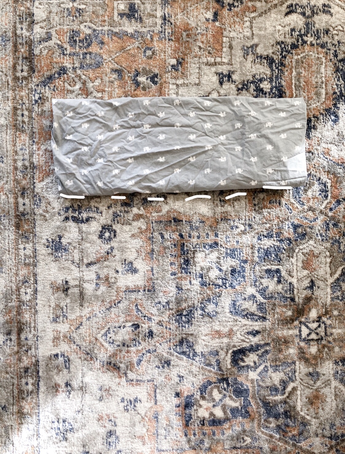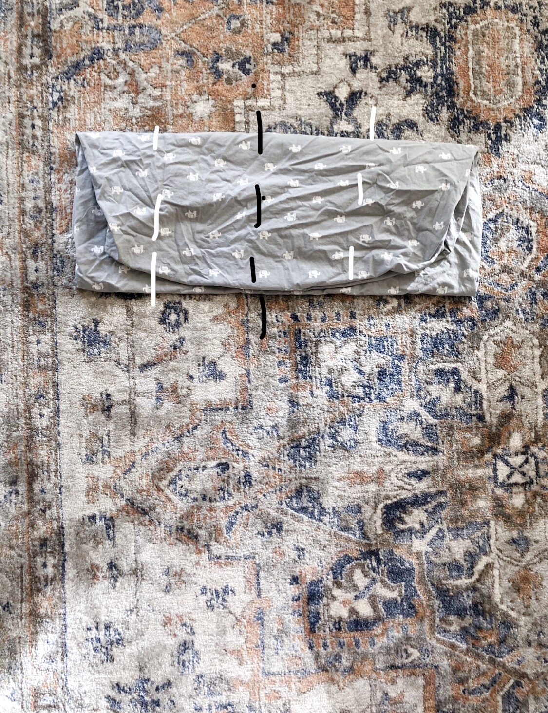 Lay out your fitted sheet as flat as you possibly can, with annoying crinkly elastic side up.